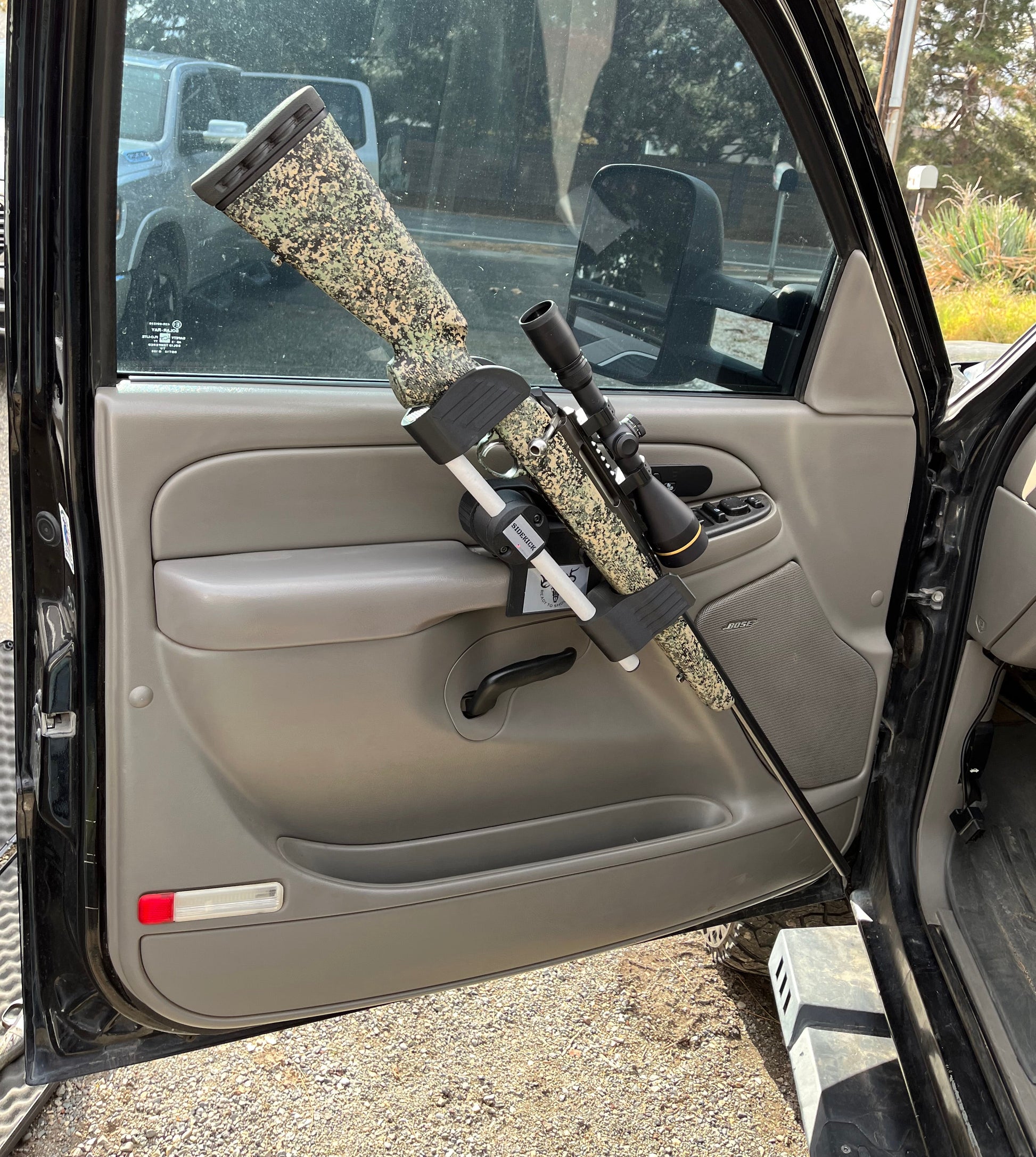 The Ready to Shoulder Sidekick gun rack is designed to give you quick access to your rifle while providing a secure and safe means for transportation. No more bumped scopes, dirty barrels, or placing your rifle in out of reach areas of your truck. Installation and removal is quick, simple and requires no modification to your vehicle. This gun rack / gun mount easily attaches to the interior door of your vehicle in seconds giving you more time to focus on hunting.