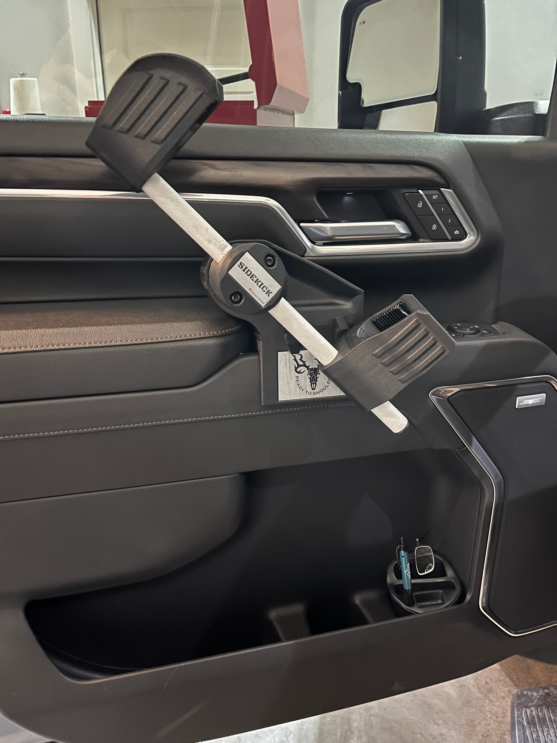 The Ready to Shoulder Sidekick gun rack is designed to give you quick access to your rifle while providing a secure and safe means for transportation. No more bumped scopes, dirty barrels, or placing your rifle in out of reach areas of your truck. Installation and removal is quick, simple and requires no modification to your vehicle. This gun rack / gun mount easily attaches to the interior door of your vehicle in seconds giving you more time to focus on hunting.